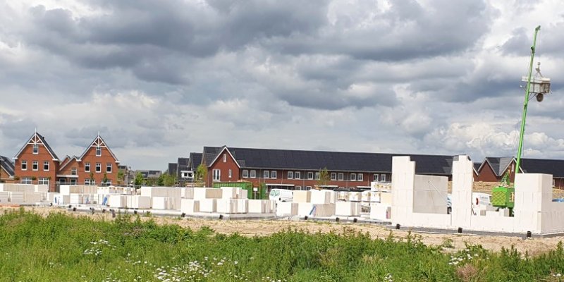 Ook bij het tweede blok patiowoningen (Blok-31) worden de eerste binnenmuren geplaatst.