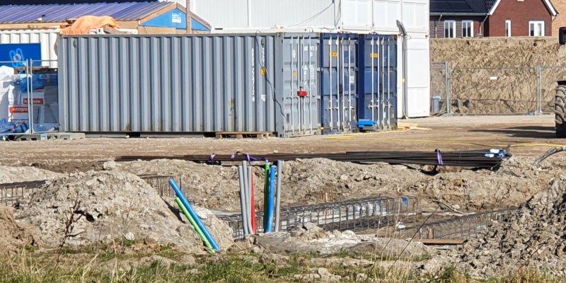 De meeste materialen hiervoor zijn inmiddels aanwezig. Het boren van de leidingen voor de warmtepompen is klaar en de boormachine is vertro...
