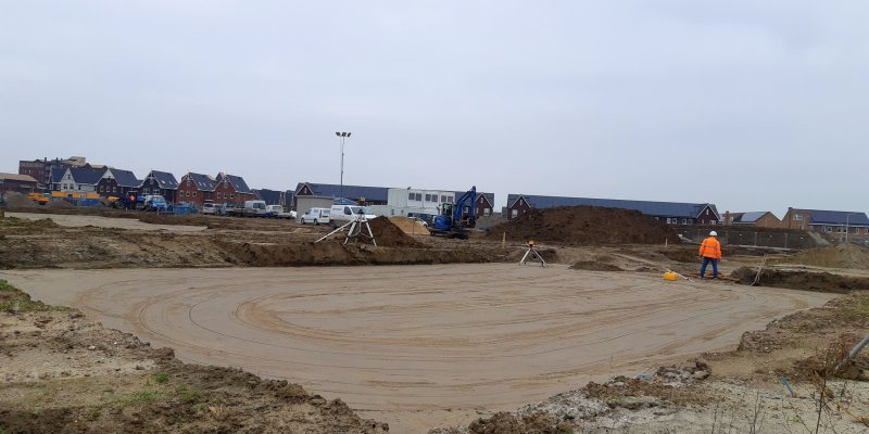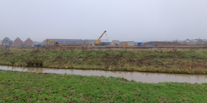 De eerste palen voor de woningen aan het Kamgras zitten er in. Met het huidige tempo zal het Borstel gras snel volgen. wij kijken de palen de grond in ;)