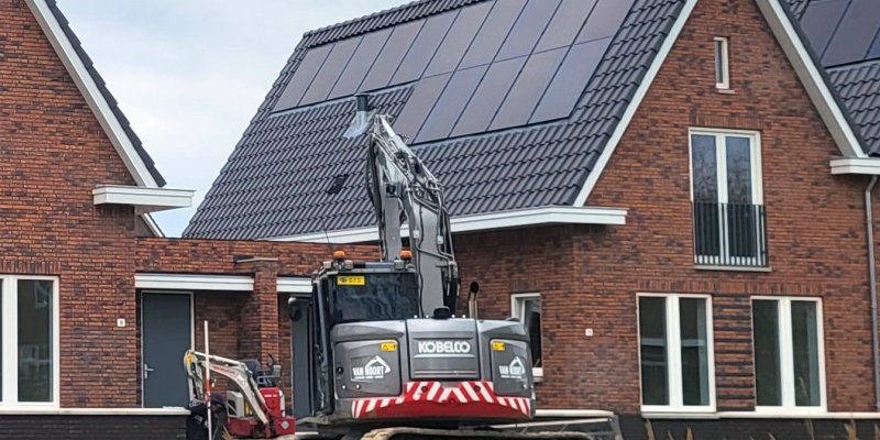 Langzaam maar zeker vort de straat aan de achterkant van de patiowoningen. De parkeerplaatsen zijn ook zo goed als klaar.