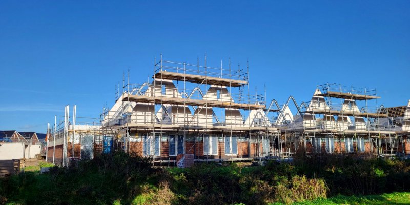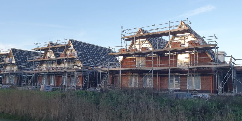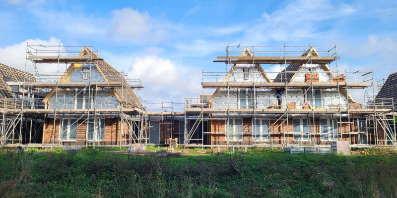 Bij Blok-31 is de eerste woning klaar, de overige volgen binnenkort als de vorst niet te veel vertraging oplevert.